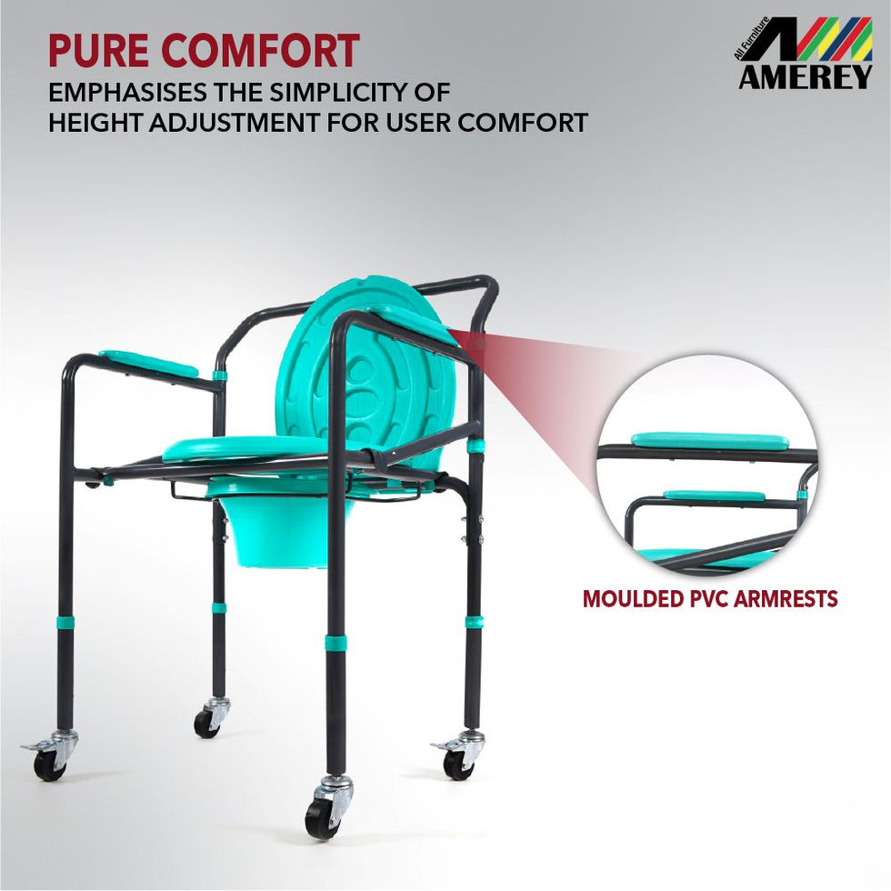 FOLDING COMMODE CHAIR WITH METAL WHEELS ( AMT-202M )
